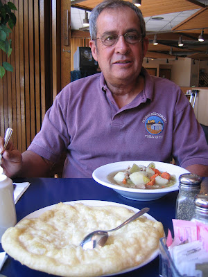 Today was a nice day...looked warmer then it was though... a cool wind creeped in. Stan and Roy headed out a little later then usual ...about 7:30 a.m. and crossed over the CONTINENTAL DIVIDE! It was over 7,oo0 feet. We stopped and had a picnic breakfast in a tiny little town called San Rafael. Not much there but an old shut down Catholic Church with a little park across the street. We were blessed I am sure.
